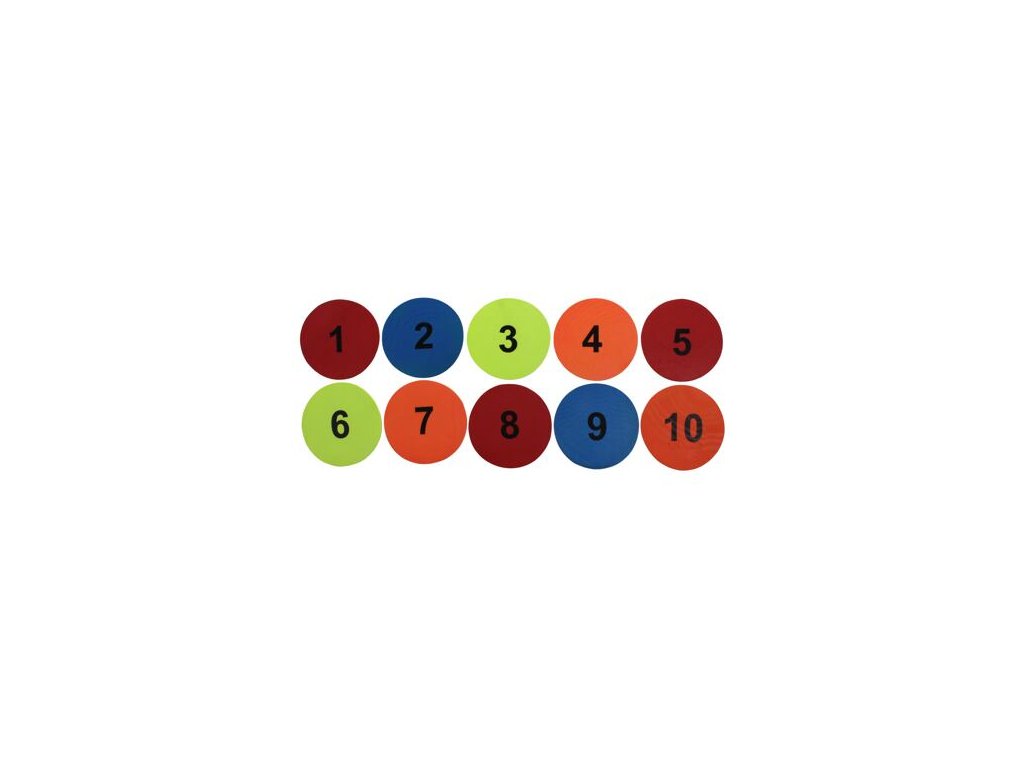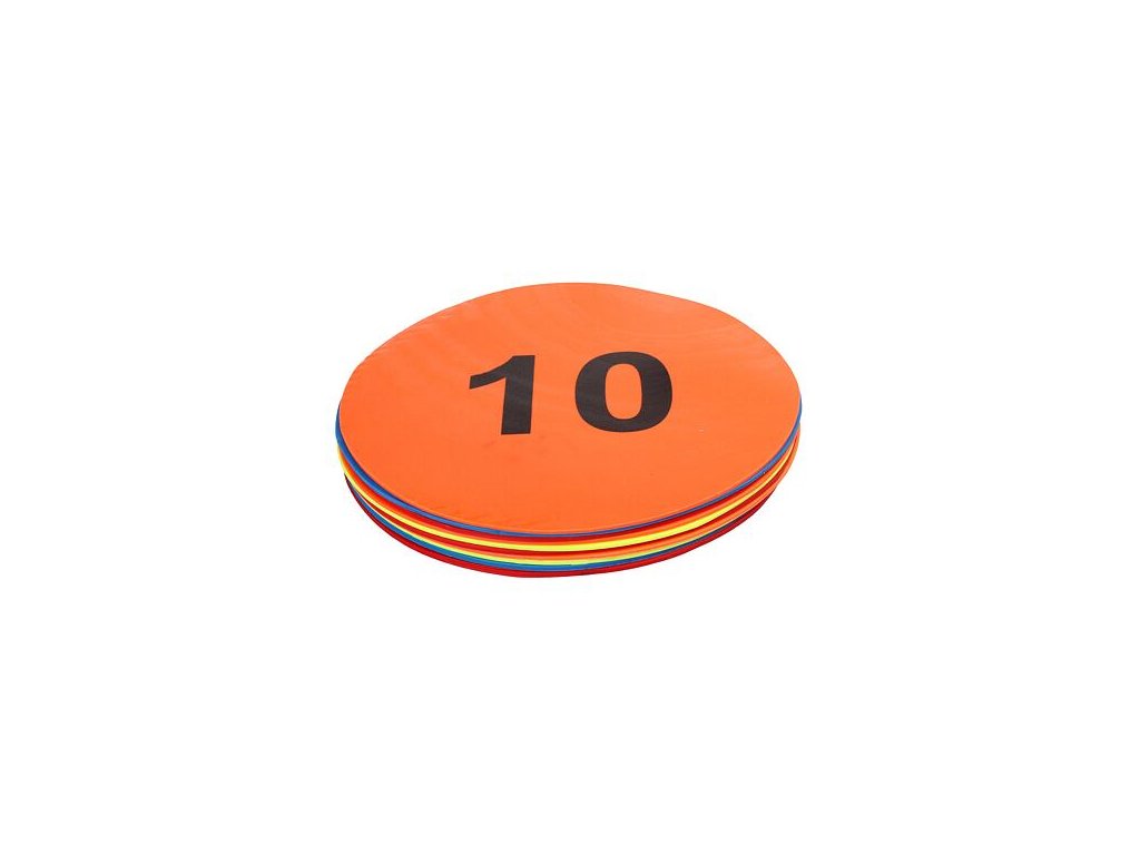 A 10-es számjegy tíz színes és számozott, kör alakú padlójelzőből álló készlet (1-10). Ez az edzéssegéd sportklubok, iskolák és klubok számára alkalmas. A címkék strapabíró polietilénből készültek, így használhatod bent az edzőteremben vagy a szabadban. A markerek átmérője 23 cm, a teljes csomag súlya kb. 1,07 kg. - 10 darabos készlet - anyaga: polietilén - átmérő: 23 cm - alkalmas kültéri és edzőteremben történő edzésreKiegészítő paraméterek
