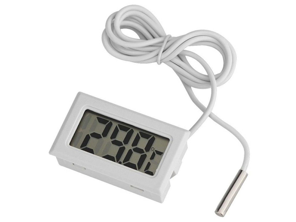 Elektronikus hőmérő nagy LCD kijelzővel és hosszú kábelen lévő szondával. A szonda (szenzor) alapvetően bárhol elhelyezhető, pl.: akvárium, terrárium, hűtőszekrény, fagyasztó, üvegház stb. Ahol pontos hőmérsékletmérésre van szükségünk -50 és 70 Celsius fok között!