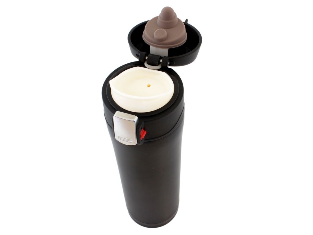Kiváló minőségű termosz bögre rozsdamentes acélból és kiváló minőségű műanyagból. Vékony és ergonomikus kialakításának köszönhetően nagyon biztonságosan tartja a kézben. Egy kényelmes gombbal működtethető fedél is van. A jó hőszigetelő tulajdonságoknak köszönhetően tökéletes hideg és meleg italok tárolására!