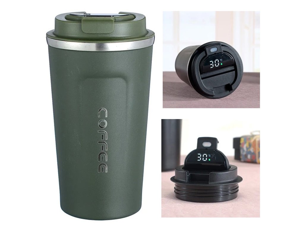 Rozsdamentes acélból és tömör műanyagból készült termobögre. Az ital aktuális hőmérsékletét mutató LCD kijelzővel és a folyadék hőmérsékletét jelző gombbal aktiválható LED diódával (hideg/meleg). Nagyon biztonságosan tartja a kézben a matt anyaghasználatnak és az ergonomikus kialakításnak köszönhetően. Egy kényelmes gombbal vezérelhető fedővel is rendelkezik. Jó hőszigetelő tulajdonságainak köszönhetően ideális hideg és meleg italok tárolásához.