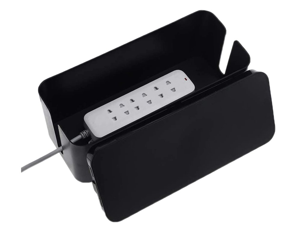 Rendkívül praktikus tároló szalagok és kábelek számára. Lehetővé teszi a hosszabbító kábel elrejtését a benne lévő vezetékekkel, és megóvja a gyermekek hozzáférésétől. A biztonsági szempontok mellett ez egy kiváló módja az íróasztal alatt/mögé szétszórt kábelek rendezésének. A doboz szorosan záródó fedéllel és két oldalsó lyukkal rendelkezik az egyszerű kábelvezetés érdekében.