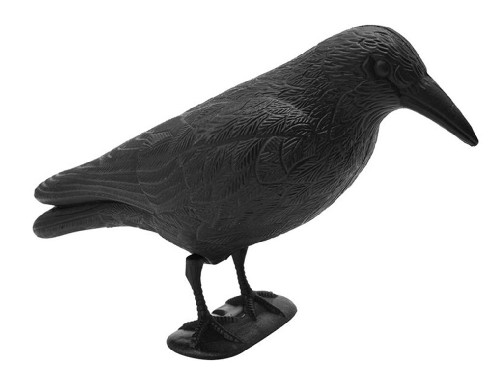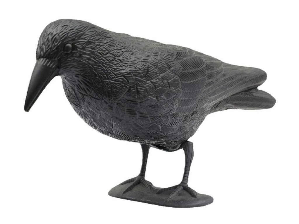 - Egy valósághű megjelenésű és méretű mesterséges holló, amely elrettenti az ingatlanon vagy a kertben táplálkozó madarakat (galambok, seregélyek stb.).