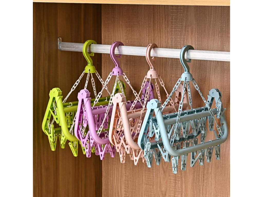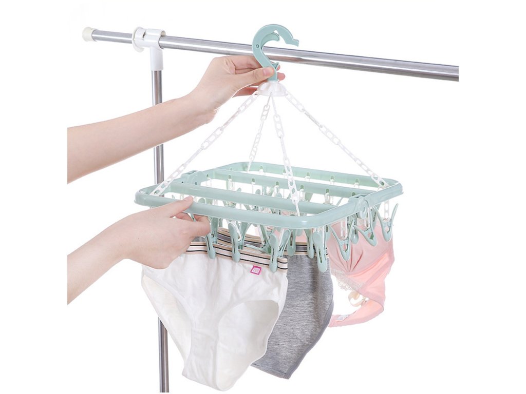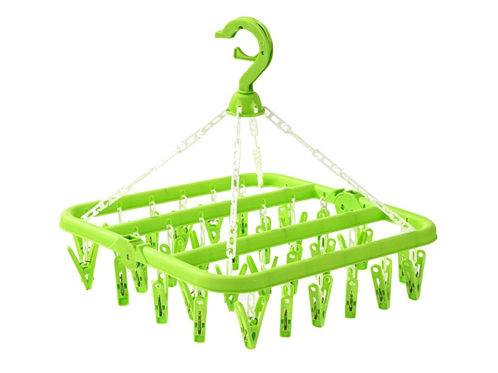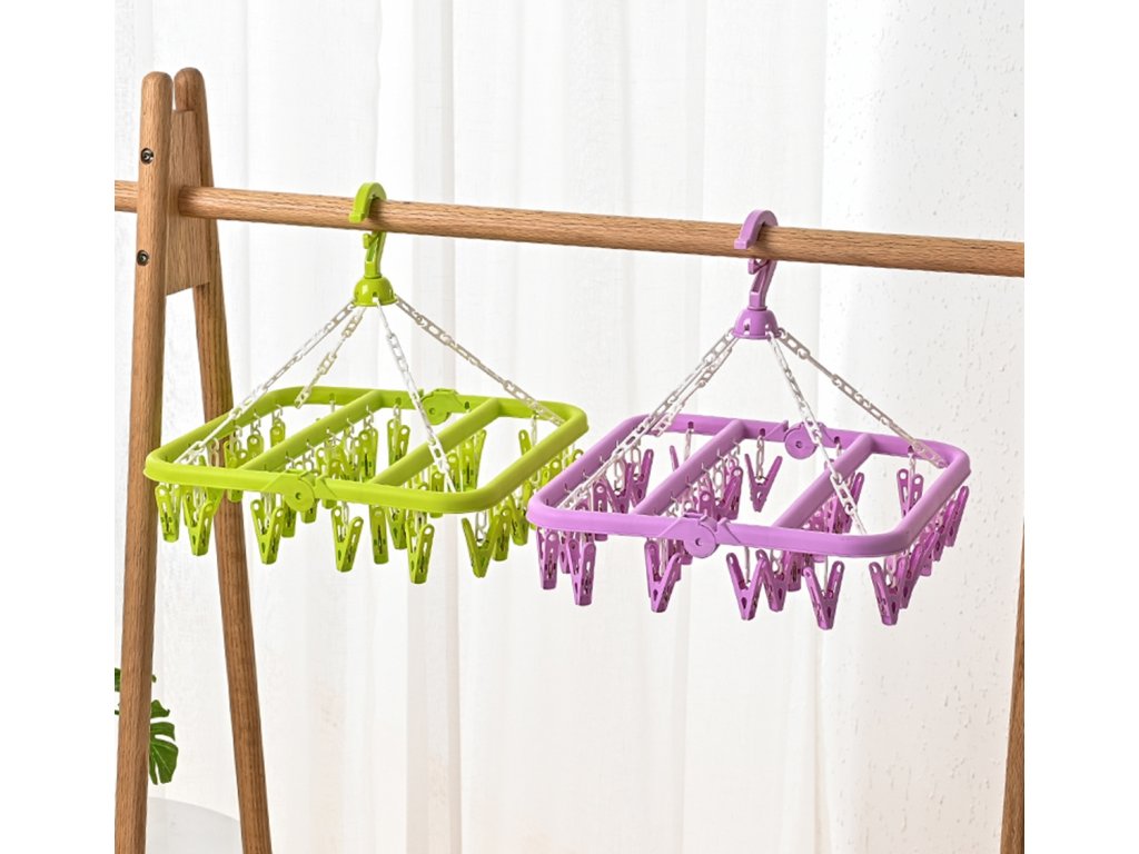 Kényelmes, kompakt szárító fehérneműk és zoknik számára. Praktikus horoggal felszerelve, amely lehetővé teszi a fogasokra és korlátokra való felakasztást. Akár 32 csipesz / kampó található benne több sorban, ami megkönnyíti a ruhanemű felakasztását szűk helyeken. A szilárd kidolgozás biztosítja a hosszú és problémamentes használatot.