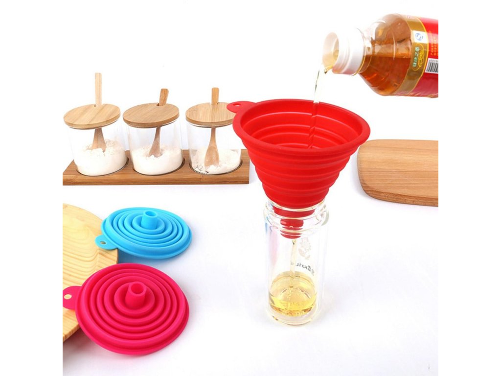 Kényelmes és praktikus kerek szilikon tölcsér, 1 cm átmérőjű. Lehetővé teszi az élelmiszerek egyszerű öntését és dekantálását egyik csomagból a másikba.