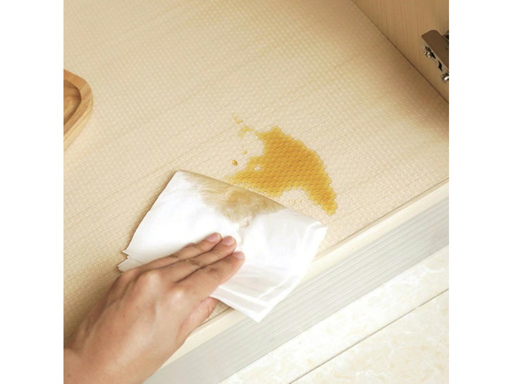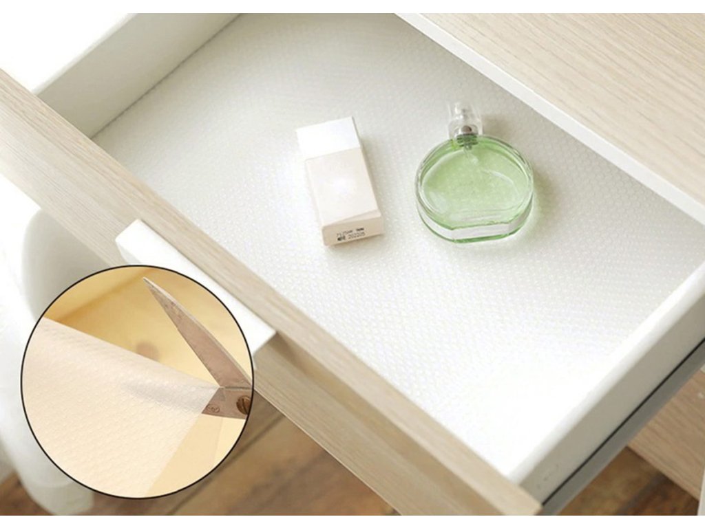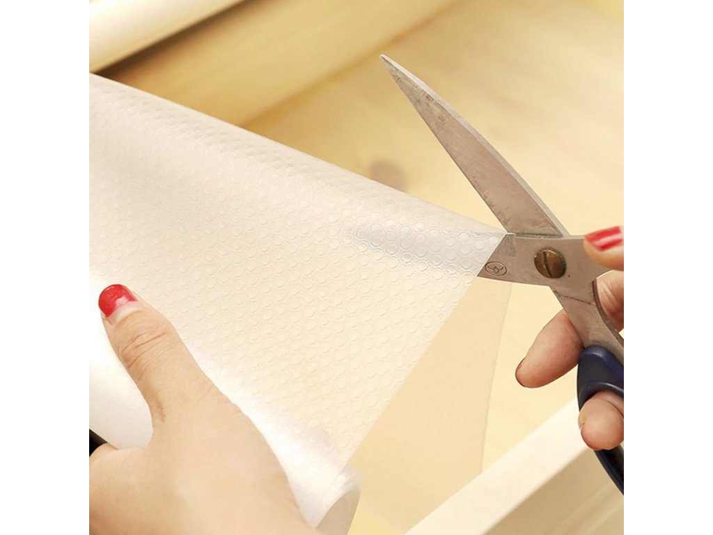 Átlátszó védőszőnyeg fiókokhoz. Hatékonyan védi a szekrények belsejét a véletlen karcolásoktól. Könnyebbé teszi a rend fenntartását a szekrények zugában – csak vegye le a szőnyeget, és rázza le a szennyeződést.
