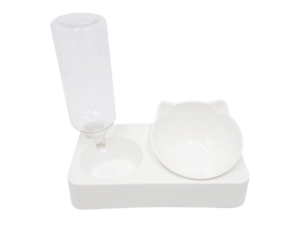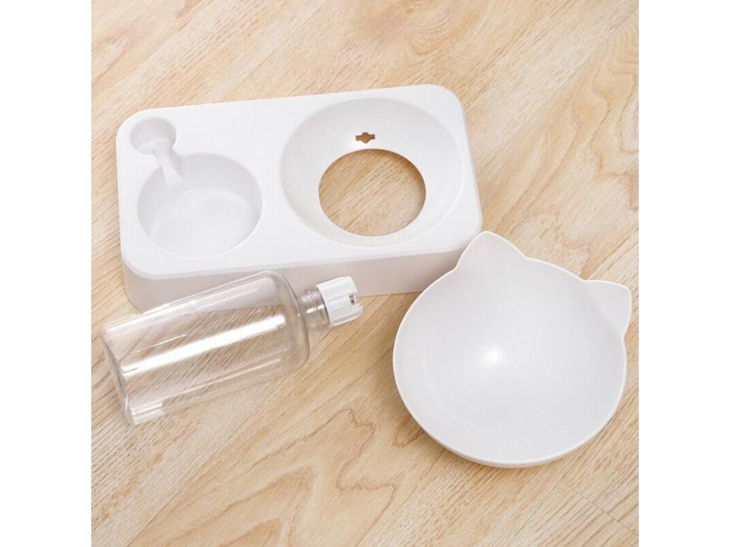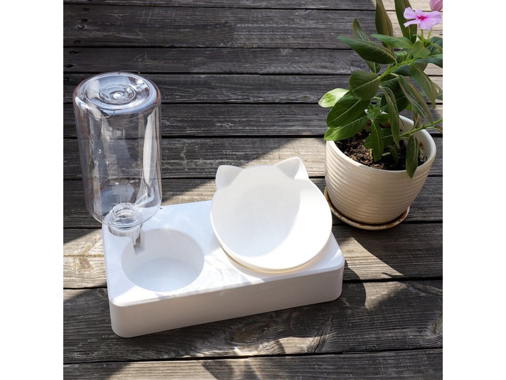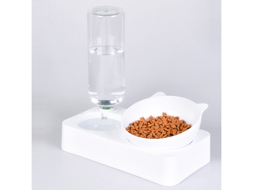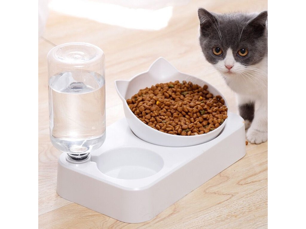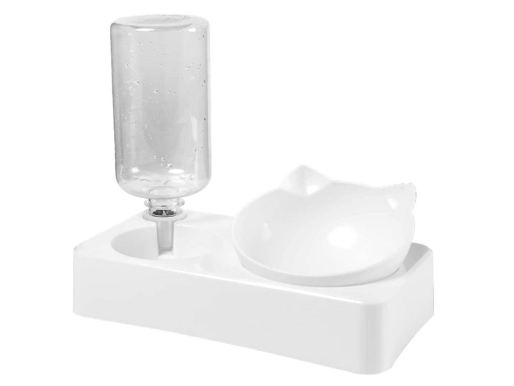 Automatikus vízadagoló és etetőtál macskáknak. A tál 15 fokos dőlésszöge megkönnyíti kedvencünk táplálékfelvételét. A 0,5 literes vizes palacknak köszönhetően kedvence mindig friss vízhez jut. A speciális szelepnek köszönhetően a készülék automatikusan vizet tölt a tartályból a tálba. A kompakt kialakítás ideális kis konyhákba és folyosókba.