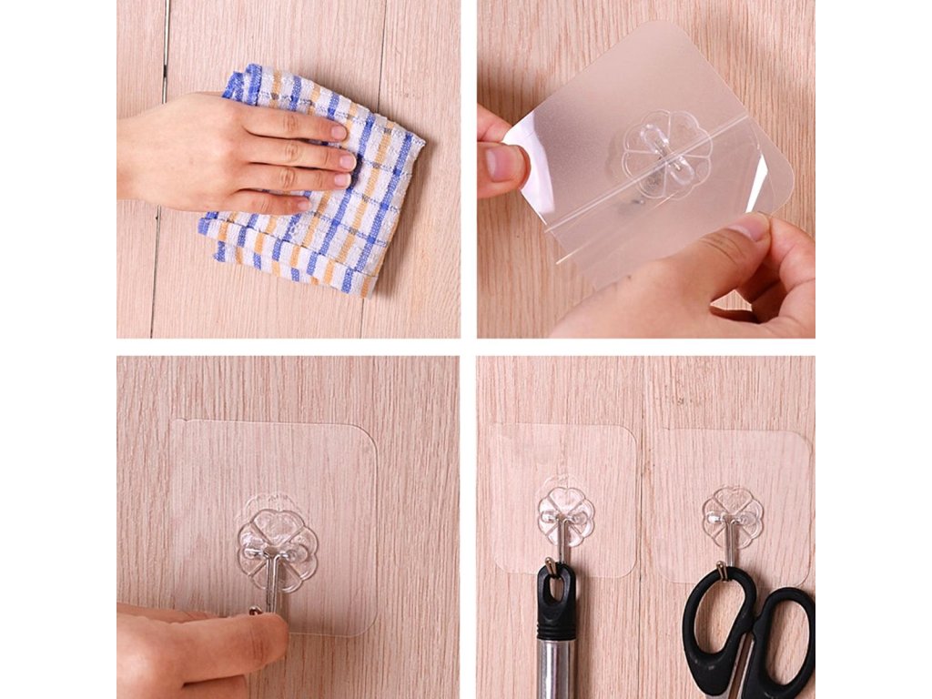 Átlátszó fali akasztó - öntapadós. Rendkívül sokoldalú! Klasszikus konyhai és fürdőszobai horogként és sok más alkalmazásban is használható (pl. nagyon tartós - miután erősen a falra ragasztja. Az akasztó ellenáll a kedvezőtlen időjárási viszonyoknak (kültéri körülmények között is használható) és érintkezik víz.