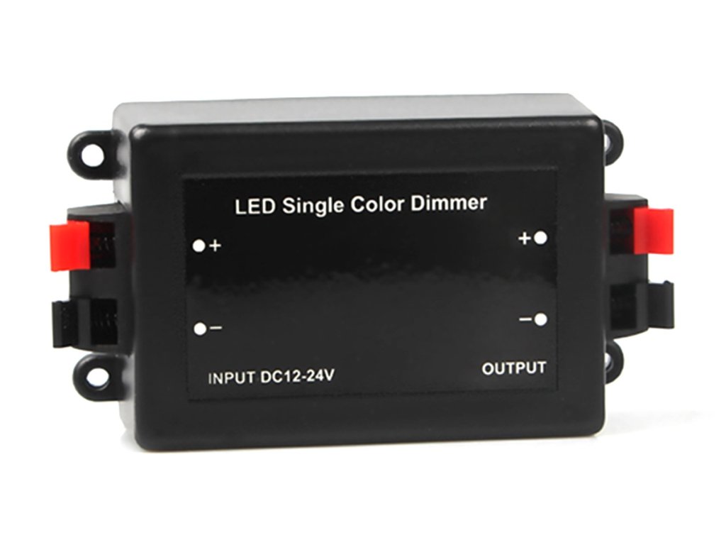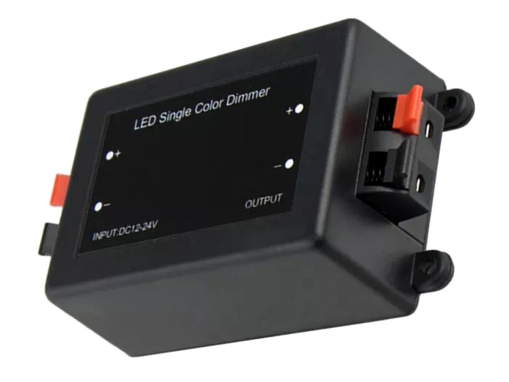 Vezeték nélküli fényerő-szabályozó/kapcsoló LED-világításhoz. Vezeték nélküli távirányítóval (RF) felszerelve, amely lehetővé teszi a világítás kényelmes lekapcsolását és a LED-szalagok fényerejének egy síkban történő beállítását 1% és 100% között. Egy további funkció 3 lehetőség a LED szalagok kikapcsolásának késleltetésére és a csíkok 4 előre meghatározott fényerőszintjének beállítására. Kényelmes táp- és kimeneti csatlakozó (terminálok). A termékvezérlő 1 csatornával rendelkezik, maximum 8A terheléssel. A távirányító rádiókommunikációt használ, ami nem zavarja más eszközök működését, hatótávolsága nyílt térben akár 15 méter. A készlet tartalmazza az összes szükséges rögzítőelemet és vezetékeket.