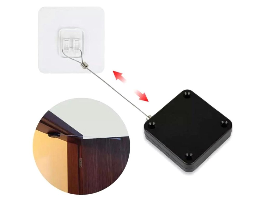 Erős és kompakt ajtócsukó belső ajtókhoz. Nagyon egyszerű telepítés és kezelés - csak ragassza az ajtócsukót a falra és a speciális fogantyút az ajtószárnyakra, majd feszítse ki az acélkábelt és akassza be a kilincset. Teljesen karbantartásmentes – nem igényel további energiaforrást.