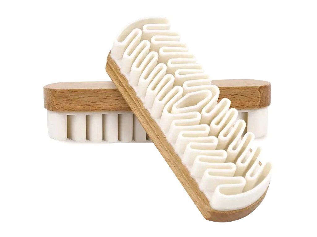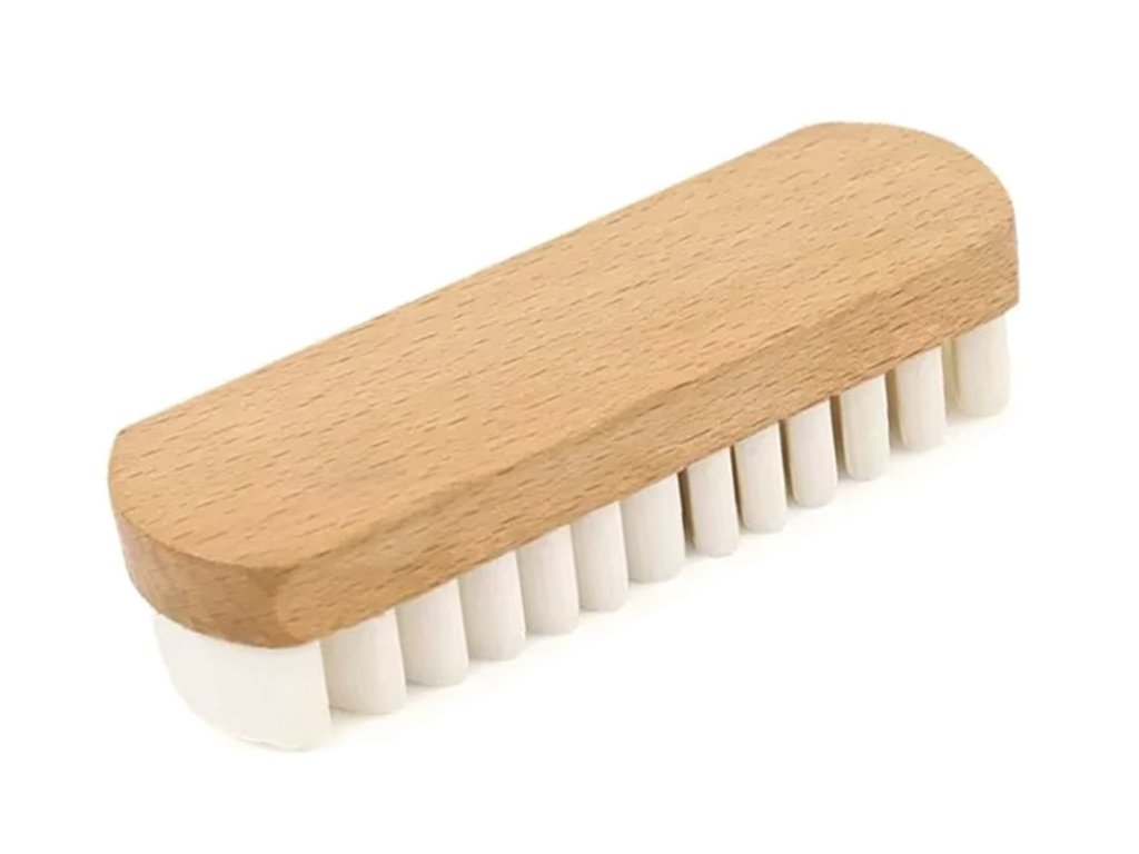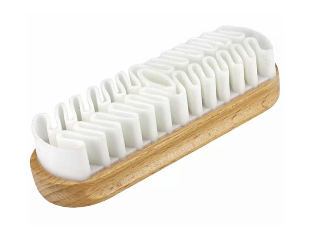 Krepp cipőtisztító kefe. Velúr és nubuk cipők karbantartásának szentelve. Nagyon praktikus és tartós a puha, sima gumi használatának köszönhetően. A fa nyél szilárd fogást és tisztítási kényelmet biztosít.