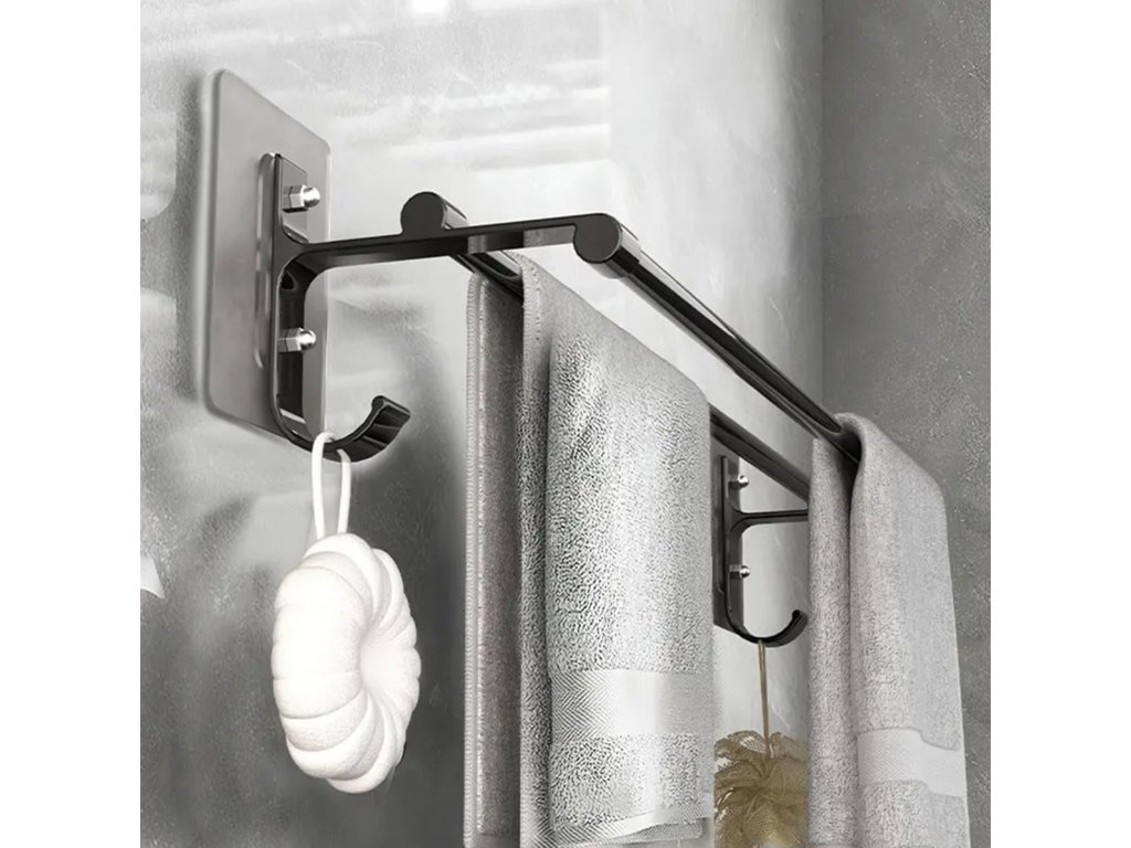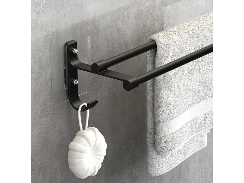 Fém loft stílusú fürdőszobai akasztó. Tömör alumíniumból készült, matt fekete porszórt. A termék ellenáll a nedvességnek és a kopásnak, ami hosszú és problémamentes használatot biztosít. A tartónak két karja van a törölközők felakasztására. Szabványos csavarszerelvény (minden elemmel).