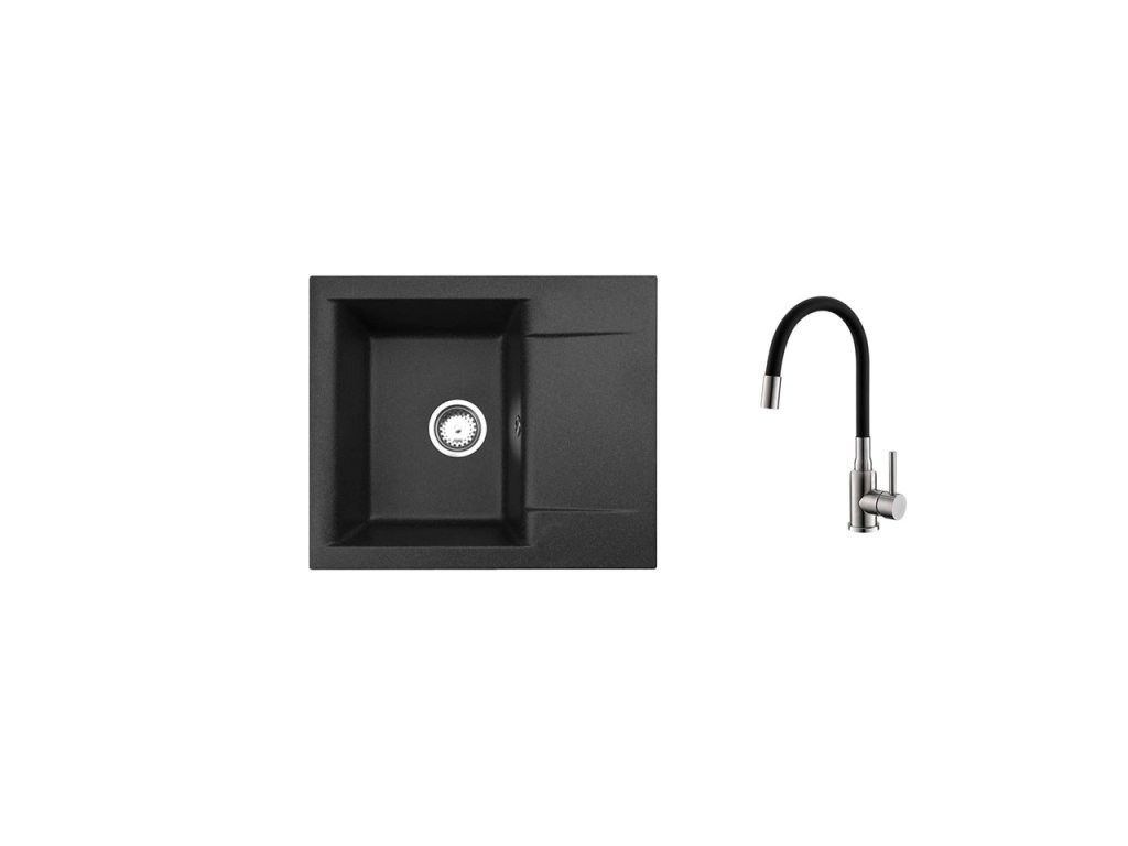 ALVEUS GEM 20 SET + Mintas BRS akkumulátor Fekete gránit mosogató, négyszögletes, rugalmas akkumulátorral