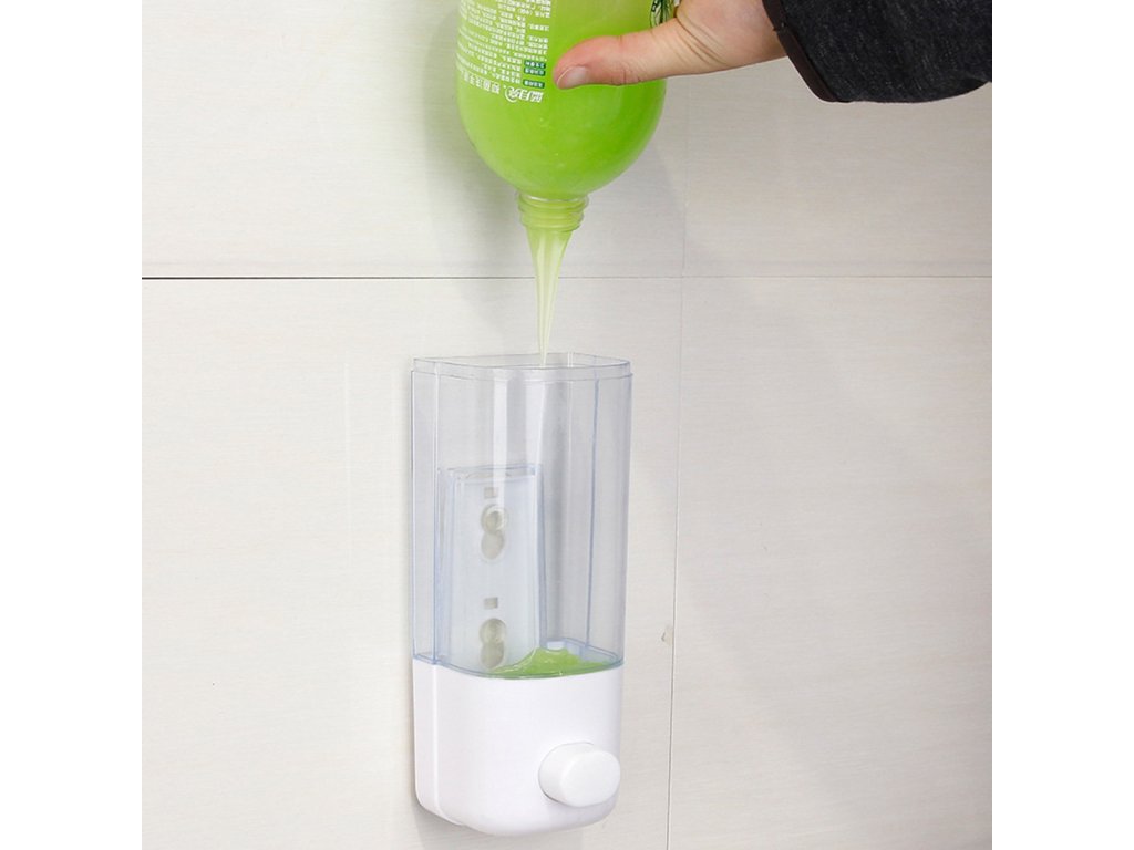 Az adagoló sokkal könnyebbé és gyorsabbá teszi a megfelelő mennyiségű folyékony szappan és mosószer adagolását – csak enyhén nyomja meg, és a folyadék egy része kifolyik az adagolóból. Nagyon gyorsan megtelik - csak vegye le az adagoló felső fedelét, és öntse a folyadékot a nyílásba - nincs szükség további szerszámokra. Falra szerelhető. Az 500 ml-es műanyag tartály elegendő az adagoló hosszú távú használatához, utántöltés nélkül.