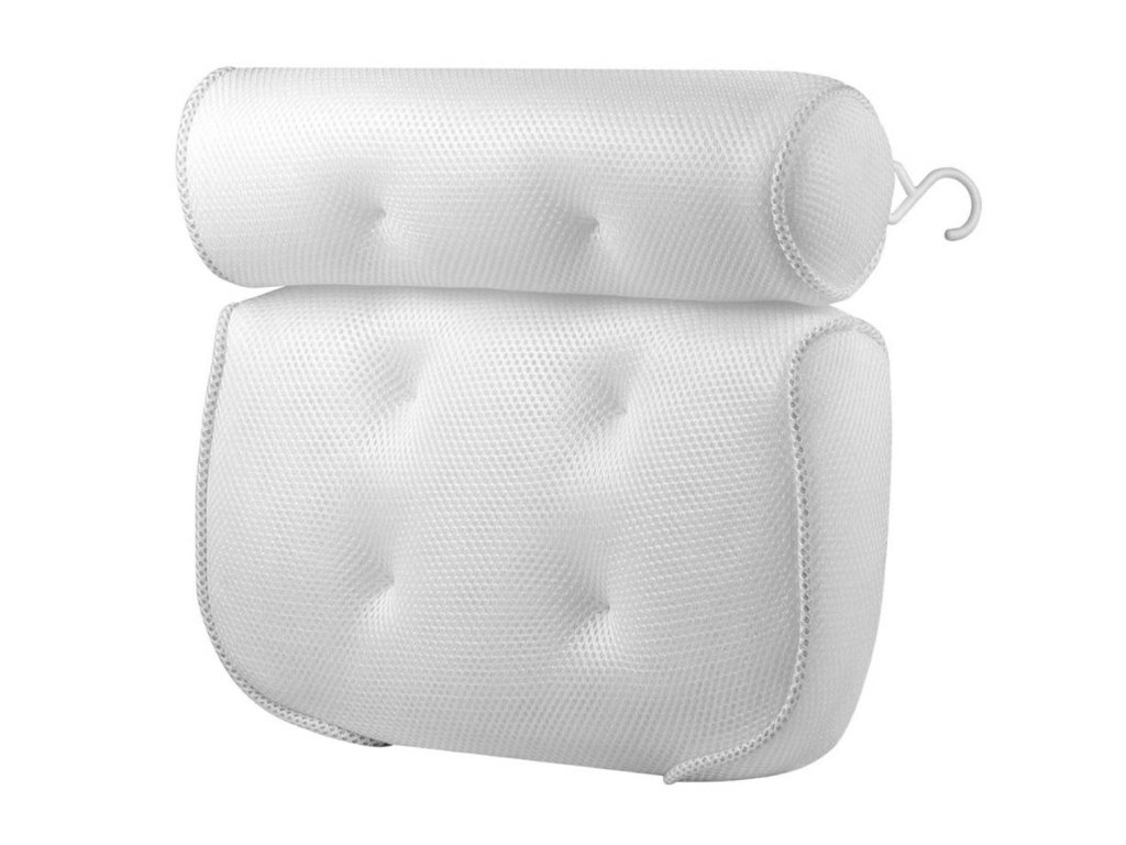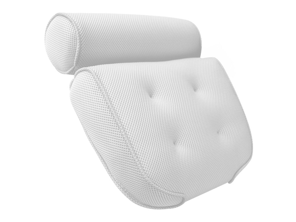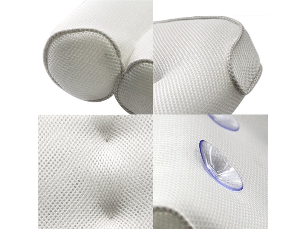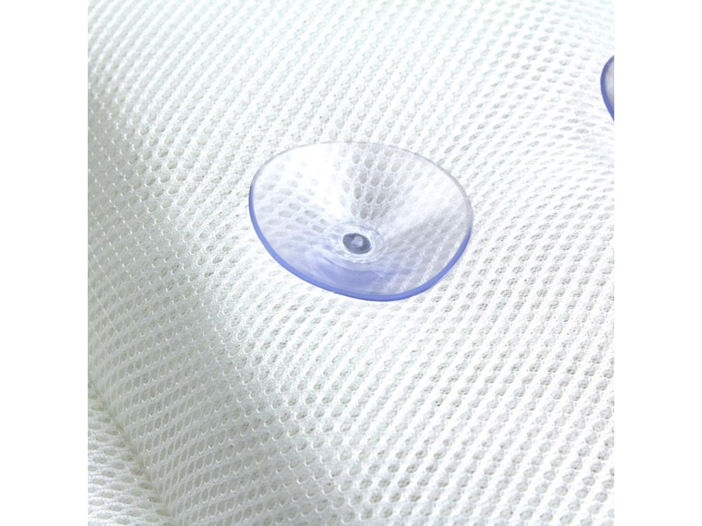 Légáteresztő hálós anyagból készült fürdőpárna. Hihetetlen kényelmet biztosít fürdés közben a fej, a vállak és a nyaki gerinc megfelelő alátámasztásának köszönhetően. Az anyag, amelyből a párna készült, lehetővé teszi a levegő és a víz átjutását, ami megakadályozza az atkák és a penész kialakulását. Tökéletesen tapad a fürdő felületéhez a párna hátulján lévő tapadókorongoknak köszönhetően A párna a testhez nyomva tökéletesen tapad és alkalmazkodik tested formájához, ami optimális helyzetben tartja a nyakcsigolyákat.