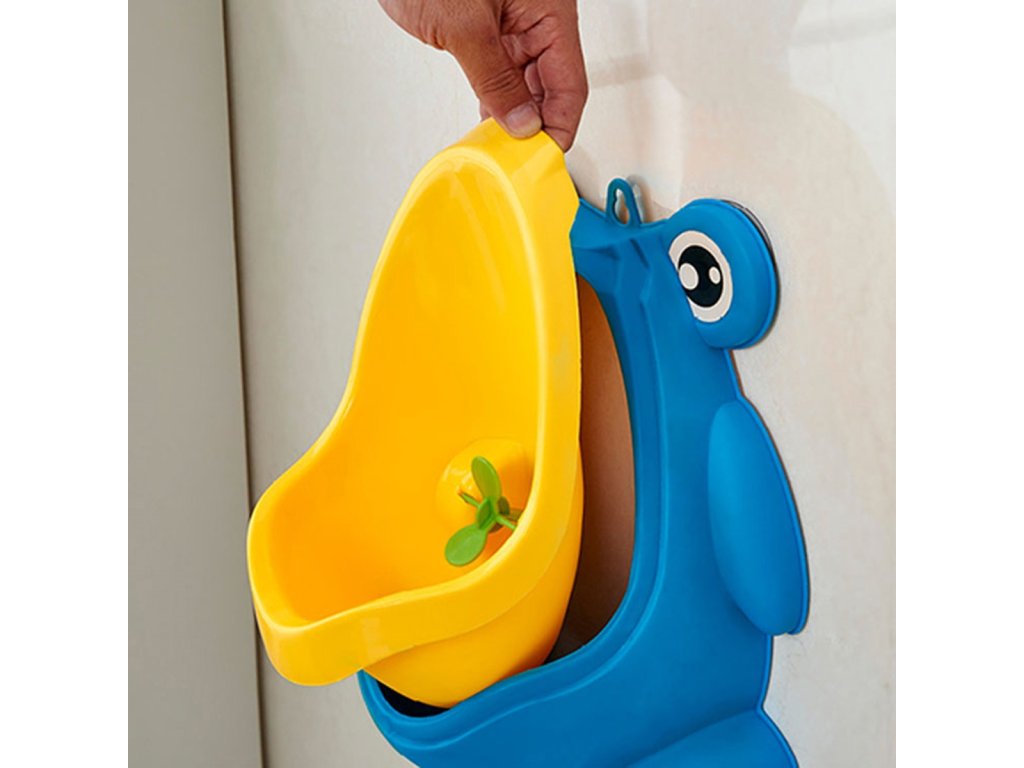 APT AG619A Gyermek piszoár, kék színű piszoár, béka formájú gyerek bili. Tökéletes termék, hogy megtanuljon felállva pisilni. Sok szórakozást biztosít gyermekének, és megtanítja a középpontra törekedni. Termékjellemzők: Teljesen új, kiváló minőségű termék a szülőknek sokkal könnyebben, a fiúknak pedig gyorsabban megtanulják a függetlenséget bili a falról, csak vegye le és ürítse ki az elülső tartályt (elölről) Az említett tapadókorongoknak köszönhetően a belső falak sima bevonata megkönnyíti a mindennapi higiéniát. Gyermekek és a környezet számára biztonságos anyagból készült Műszaki adatok: Anyaga: műanyag Szélesség: 20 cm Magasság: 29 cm Szín: kék-sárga.Kiegészítő paraméterek