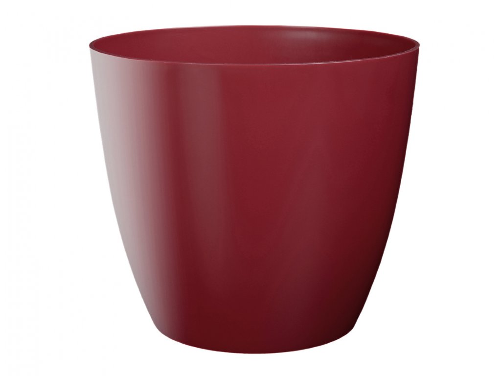 Fényes, sima felületű műanyag borítás virágcseréphez. Klasszikus, kúpos forma, kör alaprajzú. Elegáns, egyszerű kialakítás, amely előre meghatározza univerzális alkalmazhatóságát. Különösen alkalmas beltéri virágok ültetésére. Mérete: átmérője 13 cm, magassága 12 cm. Szín: bordó.