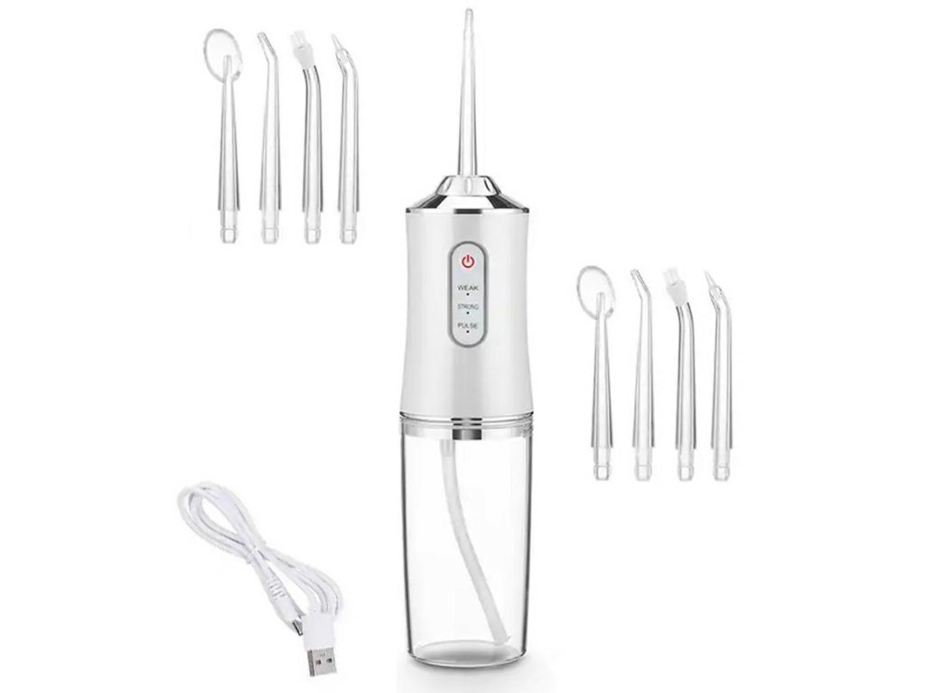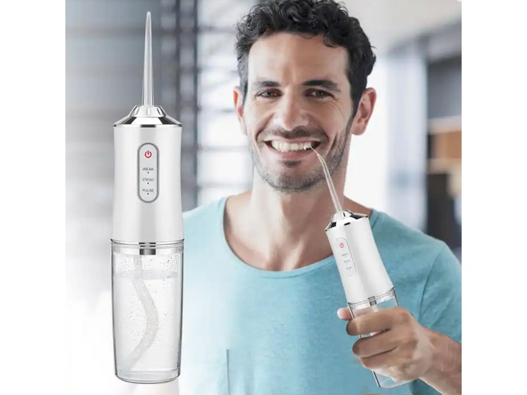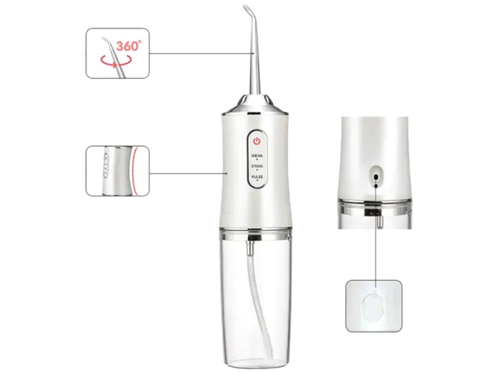 Akkumulátoros fogászati irrigátor, amely a fogak alapos tisztítására szolgál erős vízsugárral. A termék különösen ajánlott túlzott fogkővel, fogsorral vagy fogszabályozó készülékkel rendelkezőknek. Határozottan megkönnyíti a szájhigiéné gondozását, és hatékonyan kiegészíti a szokásos fogmosást. Akár 3 üzemmóddal (normál, erős és pulzáló) és akár 8 különböző heggyel (mindegyik típusból 2) felszerelve. A könnyű és kompakt kialakítás, valamint a beépített akkumulátor (a mellékelt USB-kábellel tölthető) lehetővé teszi, hogy az eszközt útközben is magával vigye.