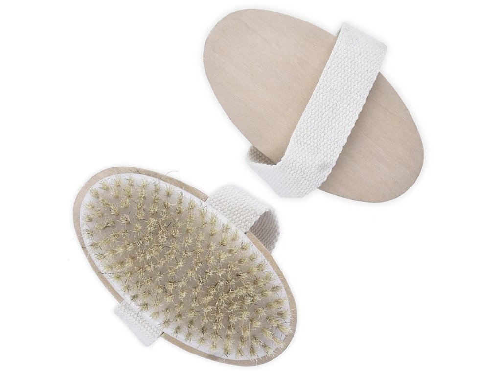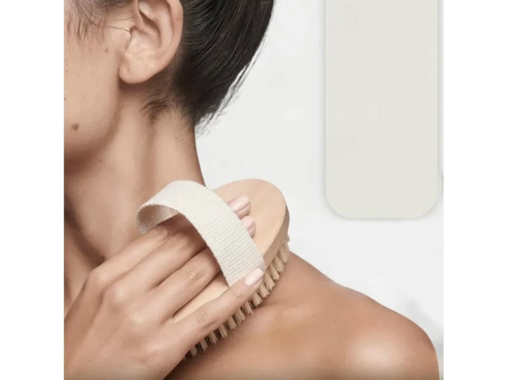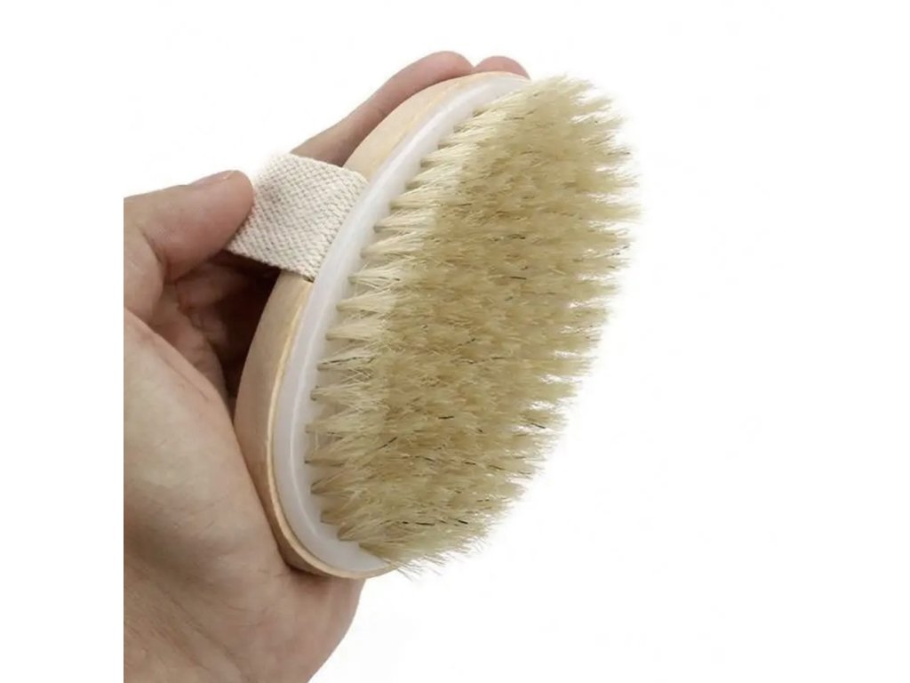 Cellulit elleni kefe száraz testmasszázshoz. Speciális, kemény sörtékkel felszerelve, amelyek tökéletesen felmelegítik a bőrt és serkentik a vérkeringést. A termék bőrbiztos anyagból készült. Kényelmes fából készült nyél egy további gumiszalaggal, amely a kefét a kezében tartja.