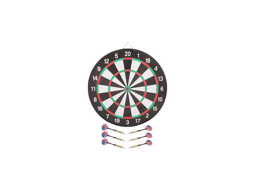 A kétoldalas DB 45 darts tábla ideális célpont kezdőknek és szabadidős játékosoknak. A céltárgy többrétegű préselt papírból készül, fémszerkezettel ellátott nyomattal. A céltábla mérete 43 x 2 cm. Az egyik oldalon egy klasszikus céltábla látható oldalszámokkal és acélhuzalokkal. A másik oldal egy egyszerűsített fekete-fehér változatot kínál, 1-9 pontozással. A csomag két készletet is tartalmaz, három acélvégű darts. Versenyezz a legjobb darts játékosokért a DB 45 készlettel. Paraméterek: - cél mérete: 43 x 2 cm - csomag tartalma: 6x darts, 1x cél - csomag súlya: 2,3 kg - anyaga: PE műanyag, vas, multi. -réteg préselt papírKiegészítő paraméterek