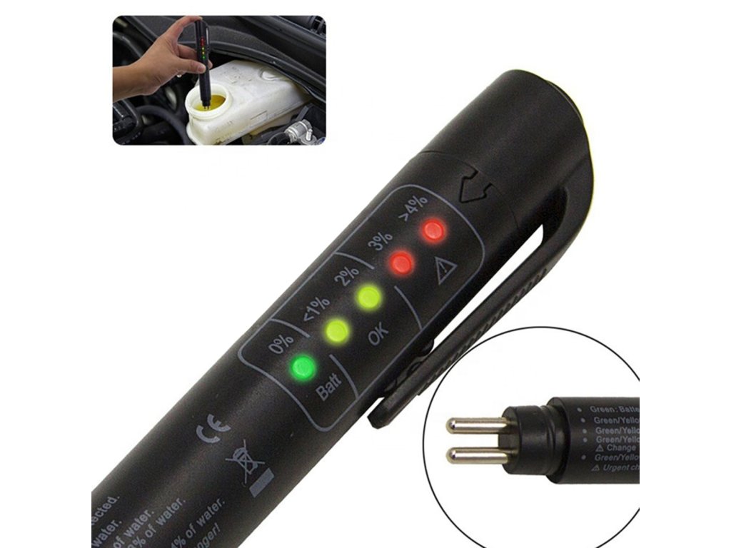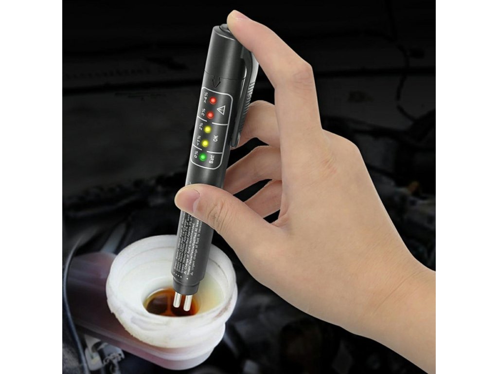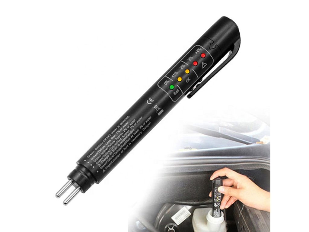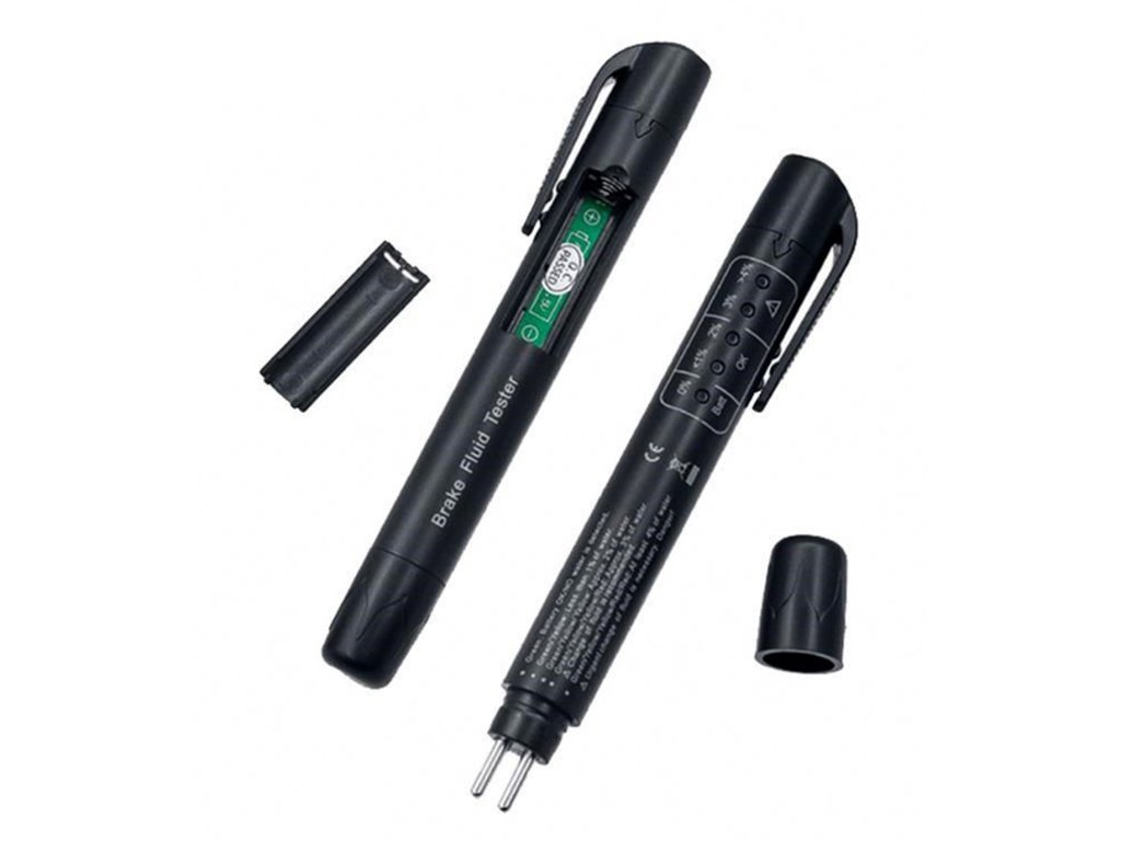 Kompakt fékfolyadék teszter. Lehetővé teszi a fékfolyadék víztartalmának azonnali mérését, az autó modelljétől függetlenül. Csak merítse a teszter elektródáit a fékfolyadék-tartályba, és olvassa el a vezérlődiódák jelzését. A készülék sokféle fékfolyadék tesztelésére képes (DOT 3, DOT 4, DOT 5, DOT 5.1).