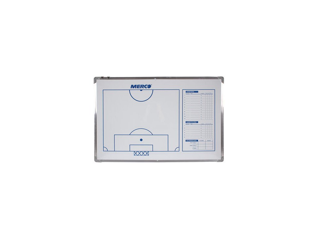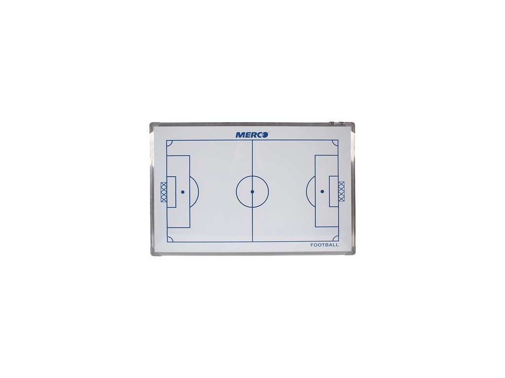 A futballedzői testület hasznos asszisztens az edzők számára minden versenyen. A Merco Football 90 taktikai tábla egy mágneses tábla két mágneskészlettel a játékosok teljesítményének tervezésére és elemzésére. A kétoldalas mágnestábla egyik oldalán a futballpálya látható. A másik oldalon a pálya fele és a játékosok névsorának asztala látható a kétharmadában. A Football 90 tábla két sorszámozott, 1-11-es mágnest és négy másik mágnest tartalmaz, amelyek a játékvezetőt és a labdát képviselik, valamint tartalmaz egy fekete jelölőt és egy szivacsot a játékstratégia részletesebb leírásához. A tábla 90 x 60 x 2 cm méretű alumínium keretben van elhelyezve, súlya körülbelül 2 kg. A tábla felső szélén két kampó található a falra akasztáshoz. A Football 90 taktikai táblának köszönhetően érthetően és világosan adja át játékosainak a szükséges utasításokat az edzőtábla használatával.Kiegészítő paraméterek