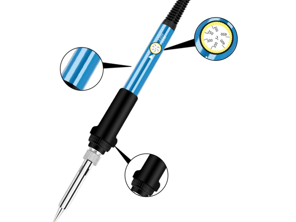A hőmérséklet-szabályozott ellenállású forrasztópáka minden műhelyben vagy házi garázsban nélkülözhetetlen eszköz. Tökéletes SMD és átmenő furatokkal rendelkező kis alkatrészek forrasztásához. Nagyon könnyű és könnyen használható, az ergonomikus forma és a hosszú tápkábel pedig sokkal könnyebbé teszi a munkát. A készlet számos kiegészítőt tartalmaz, mint például egy speciális állvány, tartalék hegyek, bádoghuzal és csipesz és egyéb kiegészítő eszközök. Mindezt egy praktikus cipzáras tokban helyezték el.