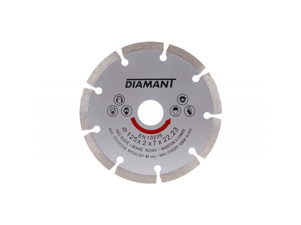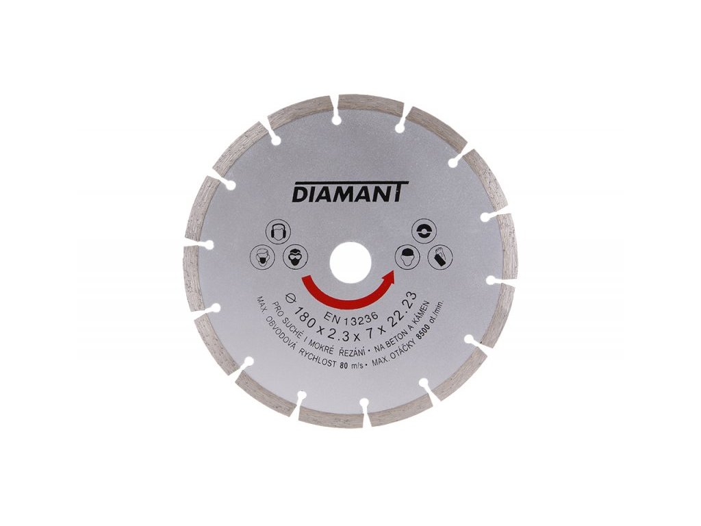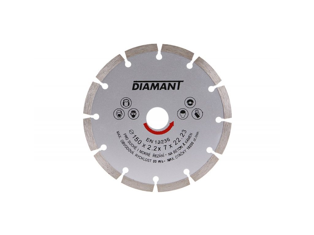 Gyémánt tárcsa DIAMANT, kialakítás: SZEGMENTES, kiváló minőségű anyagok és megmunkálás - gyémánt szegmensek nagy szilárdságú rögzítése a tárcsa tartótárcsájára, magas gyémántpor tartalom a szegmensekben, felhasználás: beton, tégla, falazat száraz vágásához , kő, ..., csomagolás: eurolyukkal ellátott buborékfólia, mellékelt szűkítő gyűrű 22,2-től 20 mm-ig, méretek: a termék megnevezésében feltüntetve.Kiegészítő paraméterek