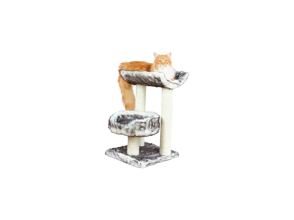 ISABA karcoló oszlop ággyal, hosszú plüss 62 cm - fekete-fehér