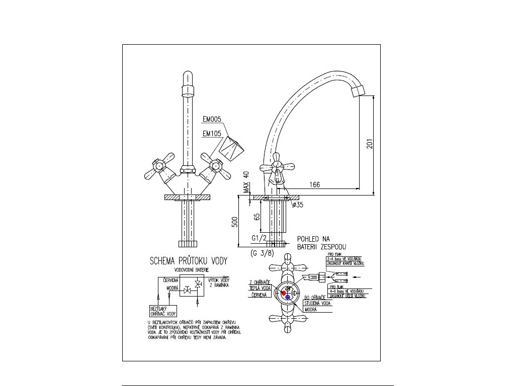 Mosogató csaptelep kisnyomású fűtőtestekhez Slezák RAV EM013/1