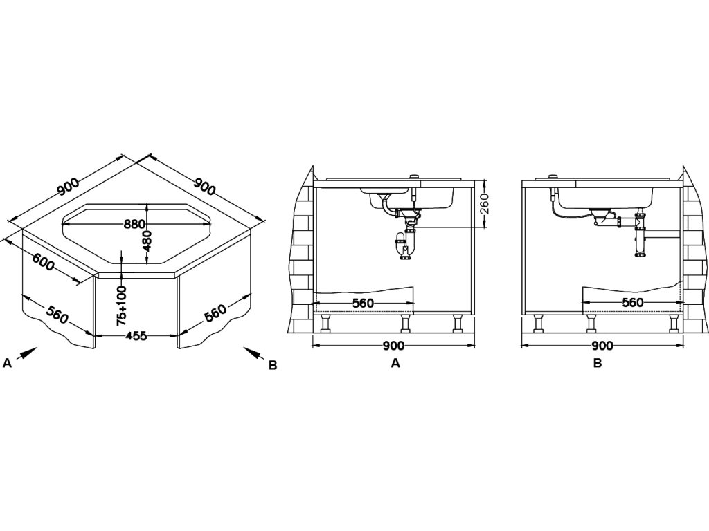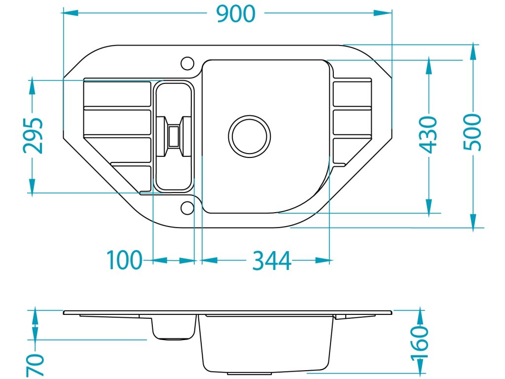 Beépített mosogató, univerzális. Kivitel: gránit mosogató lefolyóval Külső méretek: 900 x 500 mm Tálca méretei: 344x430x160 mm 100x295x70 mm Extenzív szűrőszelep 3 1/2 túlfolyóval, szifon a helytakarékosság érdekében ággal a mosogatógépen Fogantyúk a csomagban és a tömítések rögzítése Lyukkal az akkumulátorhoz Beépítési útmutató a csomagoláson lévő képeken Beépítés 600 mm széles, 900 mm sarkú szekrénybeKiegészítő paraméterek