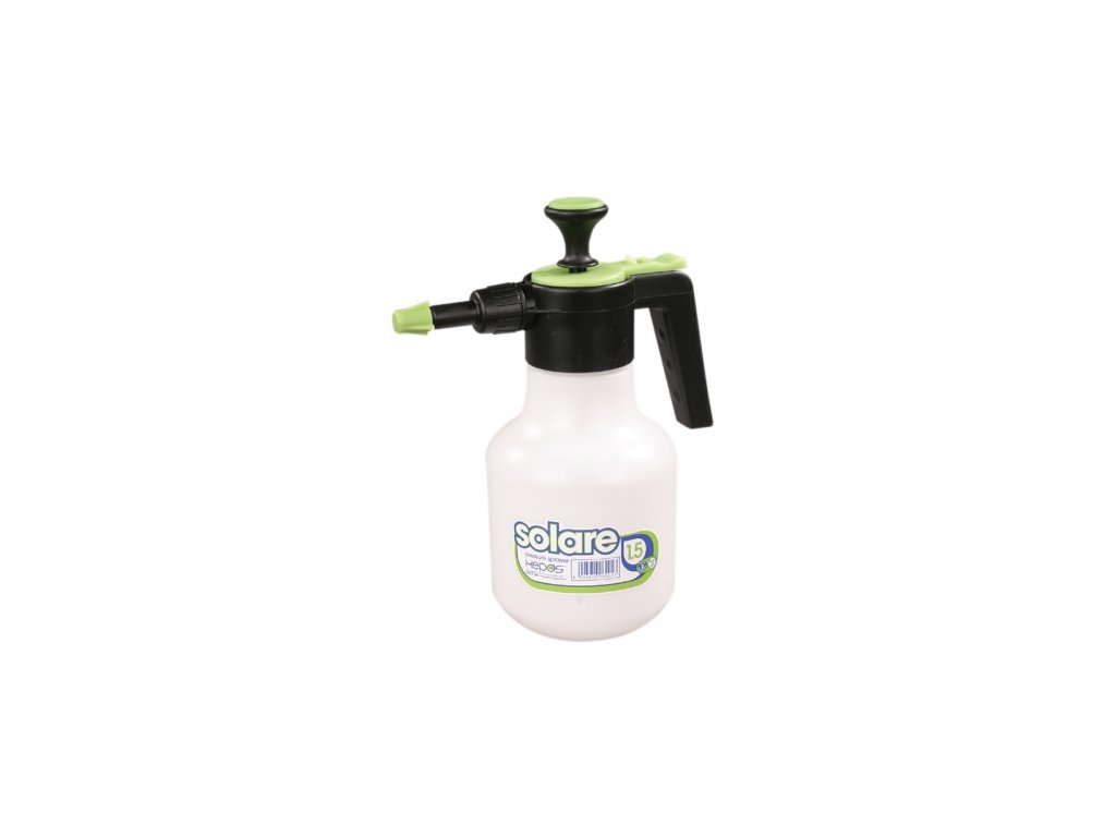 Fehér és fekete műanyag nyomós kézi permetező, fehér henger alakú tartállyal és fekete szórórésszel. Permetezésre, levélpermetezésre és vegyi készítmények (herbicidek, gombaölők, rovarölők) kijuttatására használják bel- és kültéren. A porlasztó térfogata 1,5 l, méretei: 39 x 30 x 46,3 cm.Kiegészítő paraméterek