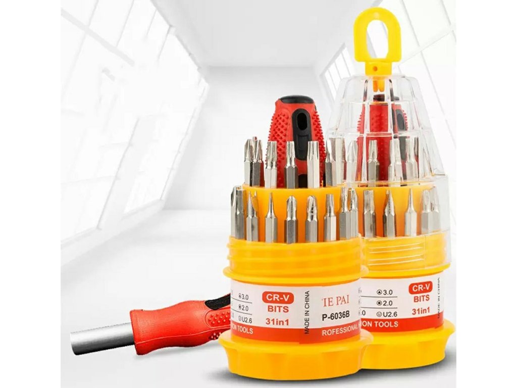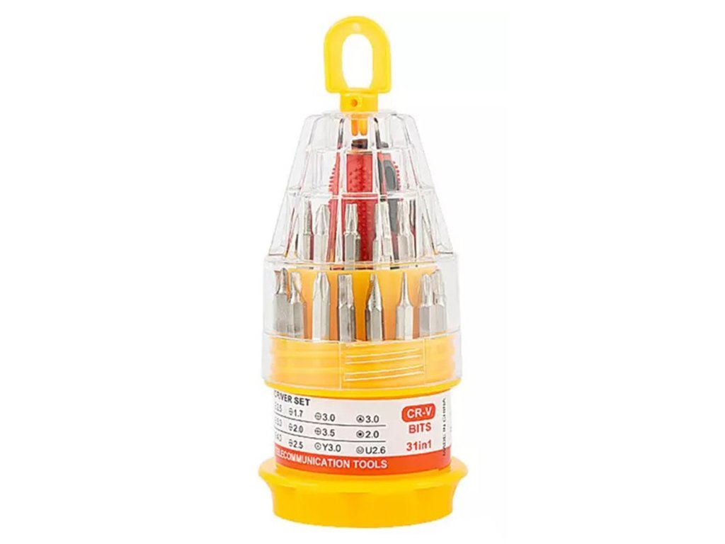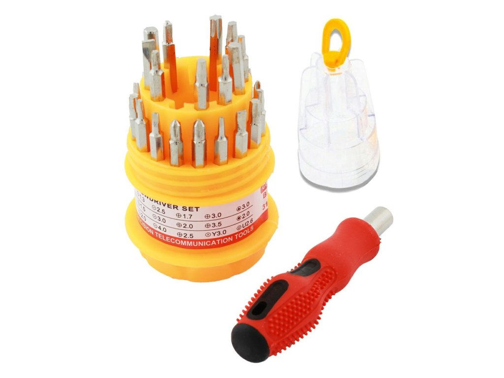 - A készlet legfeljebb 31 különböző hegyet + csavarhúzót tartalmaz, amelyek nagyon sokoldalúak. A hegyek króm-vanádium acélból készültek, ami azt jelenti, hogy hosszú évekig szolgálják Önt.