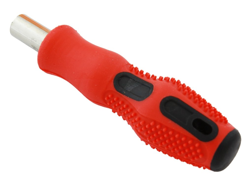 - Nagyon kényelmes profilozott csavarhúzó fogantyú gumibetétekkel. Ez szilárd fogást tesz lehetővé, és nem fárasztja el túlságosan a kezet munka közben.