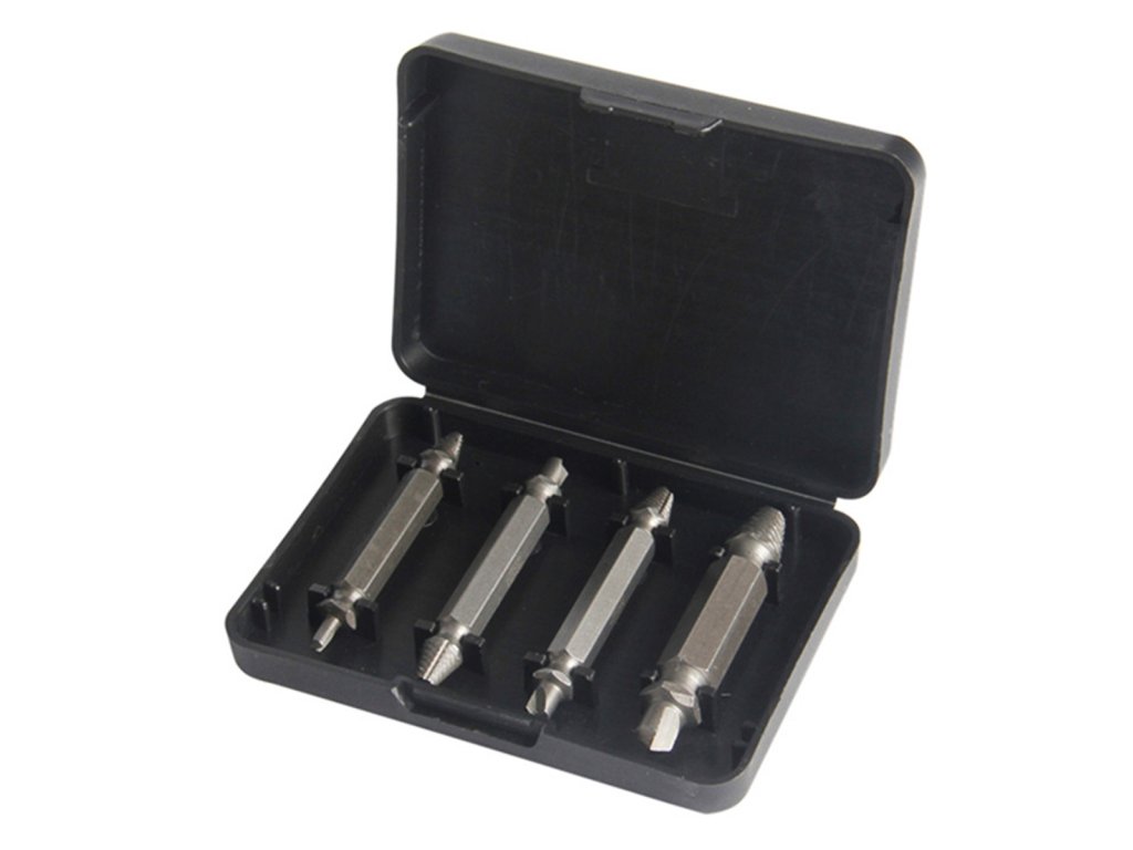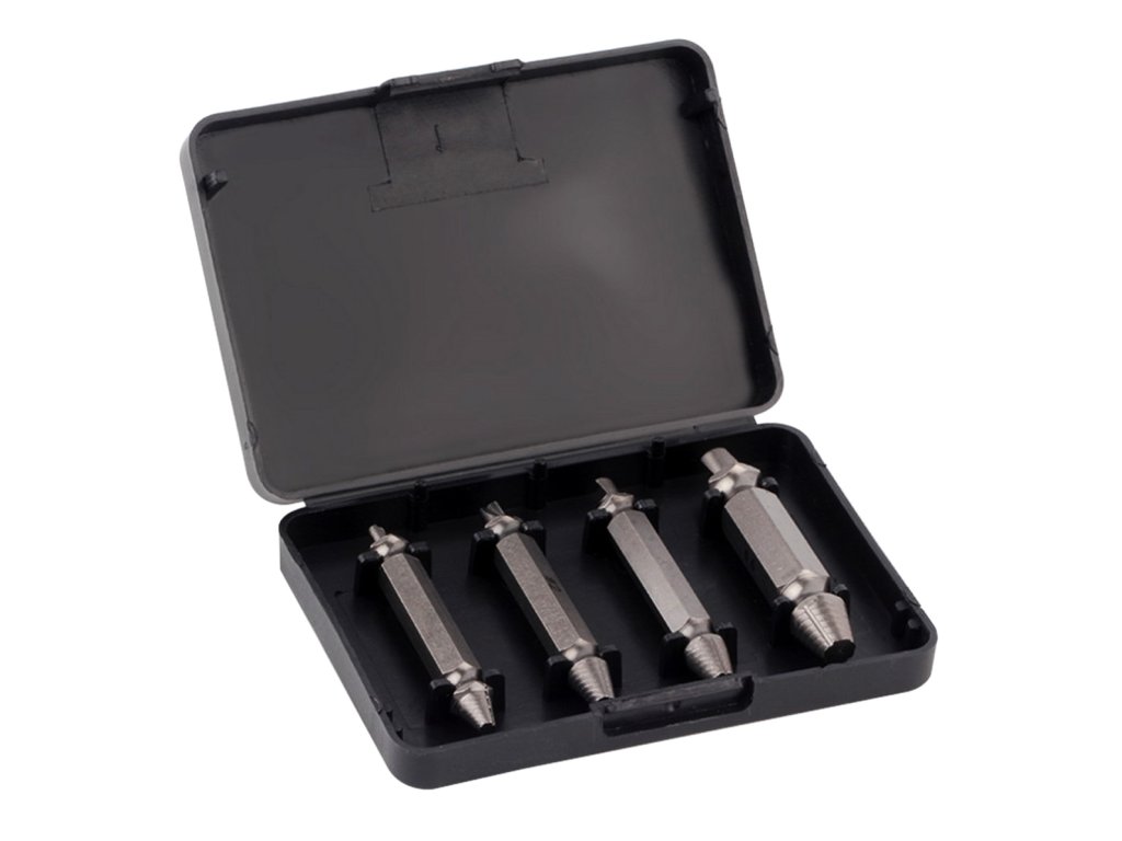 4 különböző méretű lehúzó készlet a lecsupaszított csavarok és csavarok eltávolításához. A szerszámok tömör szerszámacélból készülnek, amely nagyon nagy igénybevételnek is ellenáll! A készlet rendkívül sokoldalú, akár 4 különböző méretű lehúzóból áll, lehetővé téve a legnépszerűbb méretű sérült vagy elakadt csavarok eltávolítását! Az egészet egy esztétikus műanyag dobozba csomagolták!
