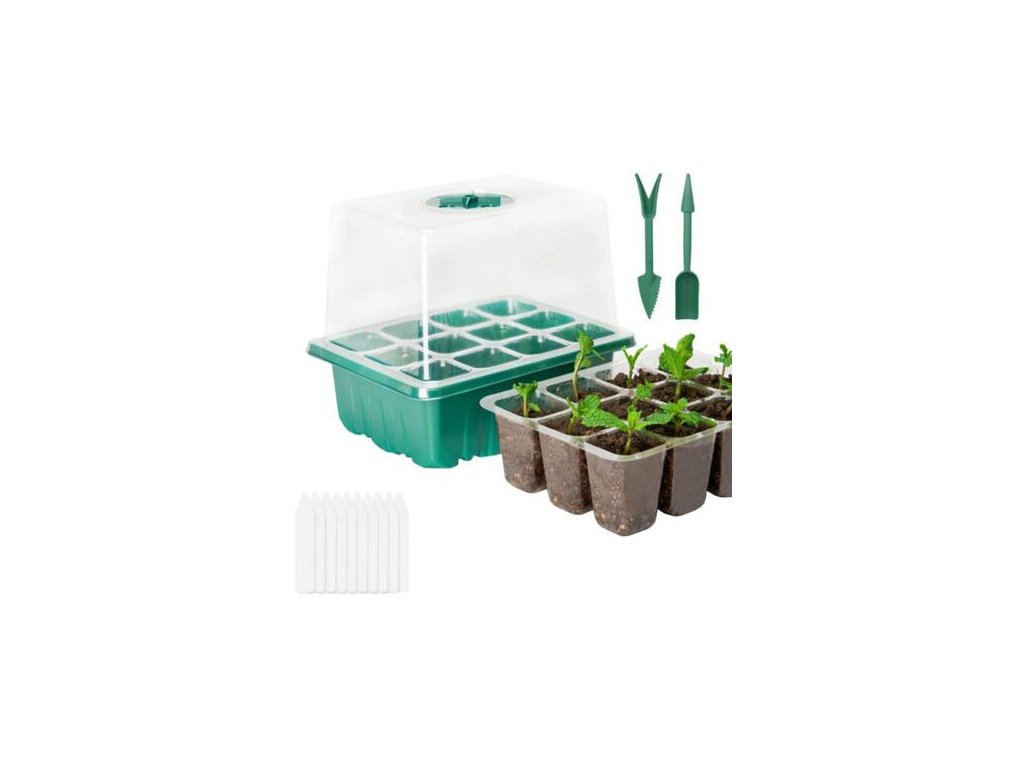 Szeret kertészkedni és saját magról termeszteni növényeit? Akkor a mini üvegházi Seedling Pot 12 ideális az Ön számára. A 12-es palánta PET műanyagból készült, és egy zöld tálcából, egy átlátszó palántabetétből áll, vízelvezető lyukakkal, egy átlátszó fedőből, amelyen szabályozható a légáramlás, 10 bevágással a palánták jelölésére és egy műanyag mini kerti szerszámból. . Minden mini hotpot 12 lyukkal rendelkezik a palánták számára, és a teljes Seedling Pot 12 készlet 5 darab mini hotpotot tartalmaz. Egy minigőzölő 18,5 x 16 x 14,5 cm-es (SzxMxM) méretű, és nagy előnye a versenytárs minigőzölőkkel szemben a kellően magas fedél. Útmutató: 1) Nedvesítse meg a talajt, lehetőleg permetezővel. 2) Használjon műanyag mini lapátot a lyukak földdel való feltöltéséhez. 3) Használjon mini ültetőkarót, hogy lyukakat készítsen a magoknak vagy dugványoknak. Helyezze a magokat a lyukakba. 4) A növények megjelölésére fehér rovátkákat használhat. 5) Zárja le a gőzölőt az átlátszó fedéllel, és állítsa be a levegő áramlását (mikroklímát) a zöld kerékkel. 6) Rendszeresen nedvesítse meg a talajt, műtrágyát is adhat hozzá. 7) Helyezze a gőzölőt világos és meleg helyre. 8) Használhatja a második mellékelt mini eszközt a palánták eltávolításához. Tippek: Az összes magot címkézze fel. Használjon jó minőségű talajt, hogy elkerülje az esetleges kártevőket és a növényi penészt. Javasoljuk, hogy minden virágcserépbe 2-3 magot ültessünk, hogy növeljük a sikeres termesztés esélyét. Mielőtt kiveszi a palántákat a virágcserépből, hagyja kissé megszáradni a talajt, akkor könnyebb lesz eltávolítani őket. Csomag tartalma: 5 db zöld csészealj 5 db átlátszó betét virággal (1 virág mérete 3,8 x 3,8 x 5,5 cm) 5 db átlátszó fedő 5 db kerék a melegház mikroklímájának beállításához 10 db címke a növények jelölésére 2 darab mini kerti szerszám Anyaga: PET műanyagKiegészítő paraméterek