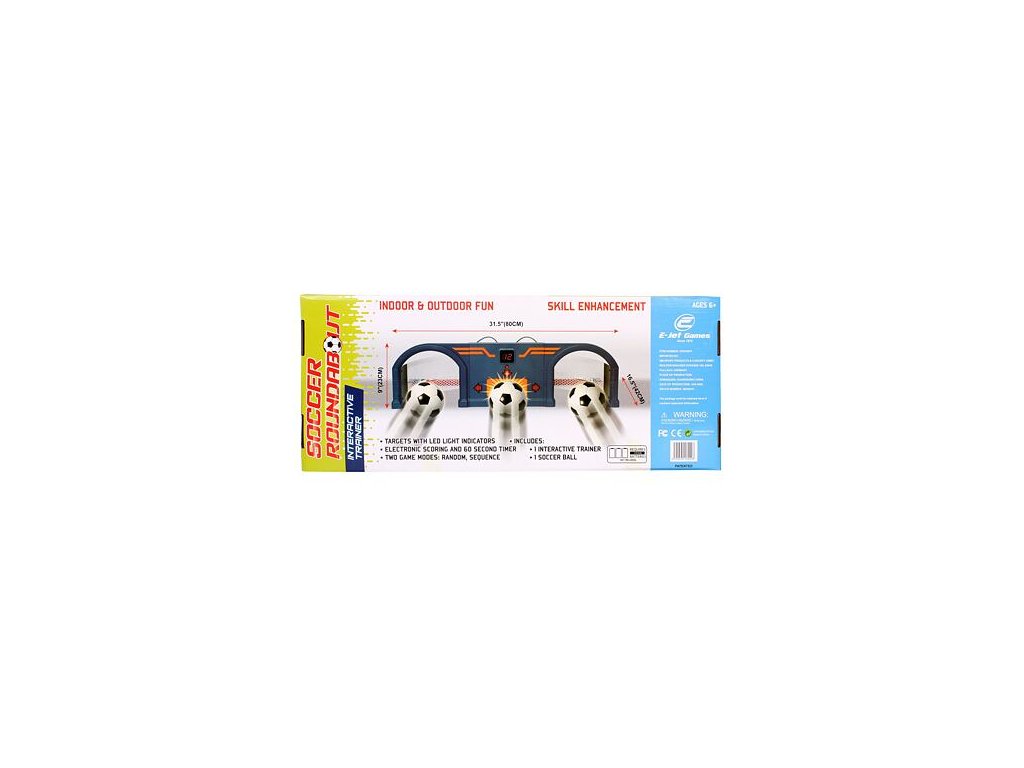 Az E-JET Soccer Roundabout szórakoztató játék gyerekeknek és felnőtteknek. Ez az interaktív eszköz szórakoztató módon segít a pontosság, a sebesség és az észlelés javításában. A cél mindig az, hogy a labdát bal oldalra, jobb oldalra vagy középre rúgd, attól függően, hogy melyik LED nyíl világít. Mindig 60 másodperced van egy körre, és aki a legtöbb pontot gyűjti, az nyer. Ez a kis és nagy futballisták számára készült edzőcipő ezért ideális a barátokkal való verseny lebonyolításához, de akár otthon, akár kint egy sík felületen is edzheti magát. - méretek: 80 x 42 x 23 cm - 12 cm-es hab golyó - csomag súlya: kb. 2,37 kg - beltéri és kültéri használatra - nyilak LED világítással - 3x AA elem (nem tartozék) - fiatalabbaknak nem alkalmas. gyerekek 6 évesekKiegészítő paraméterek