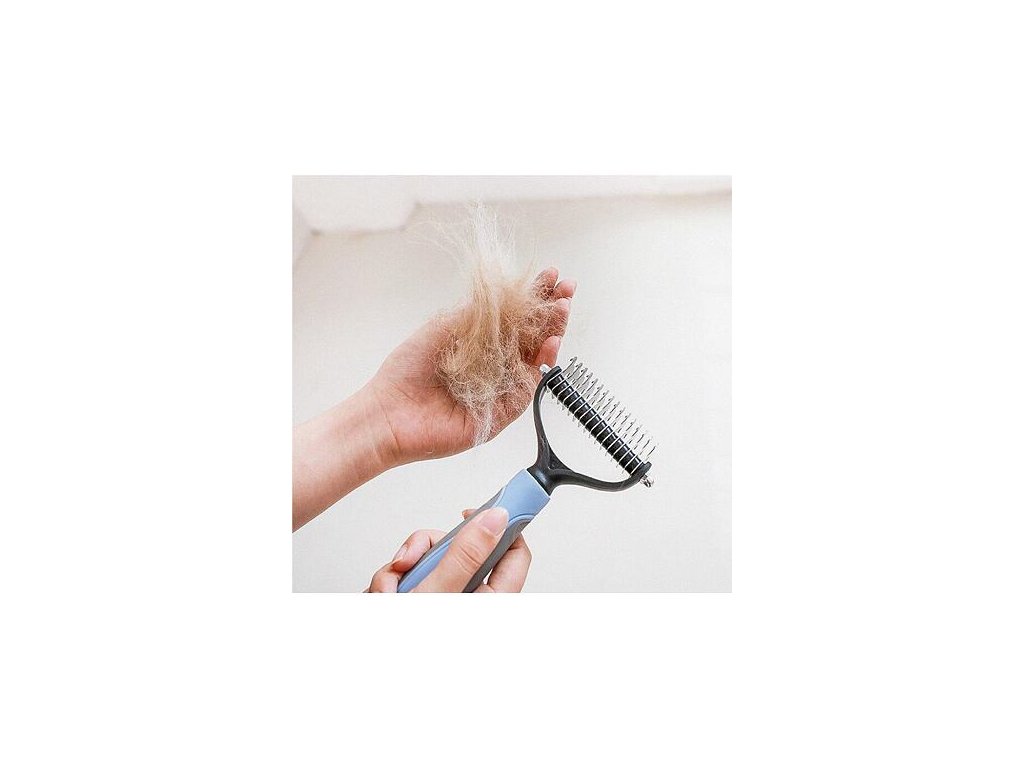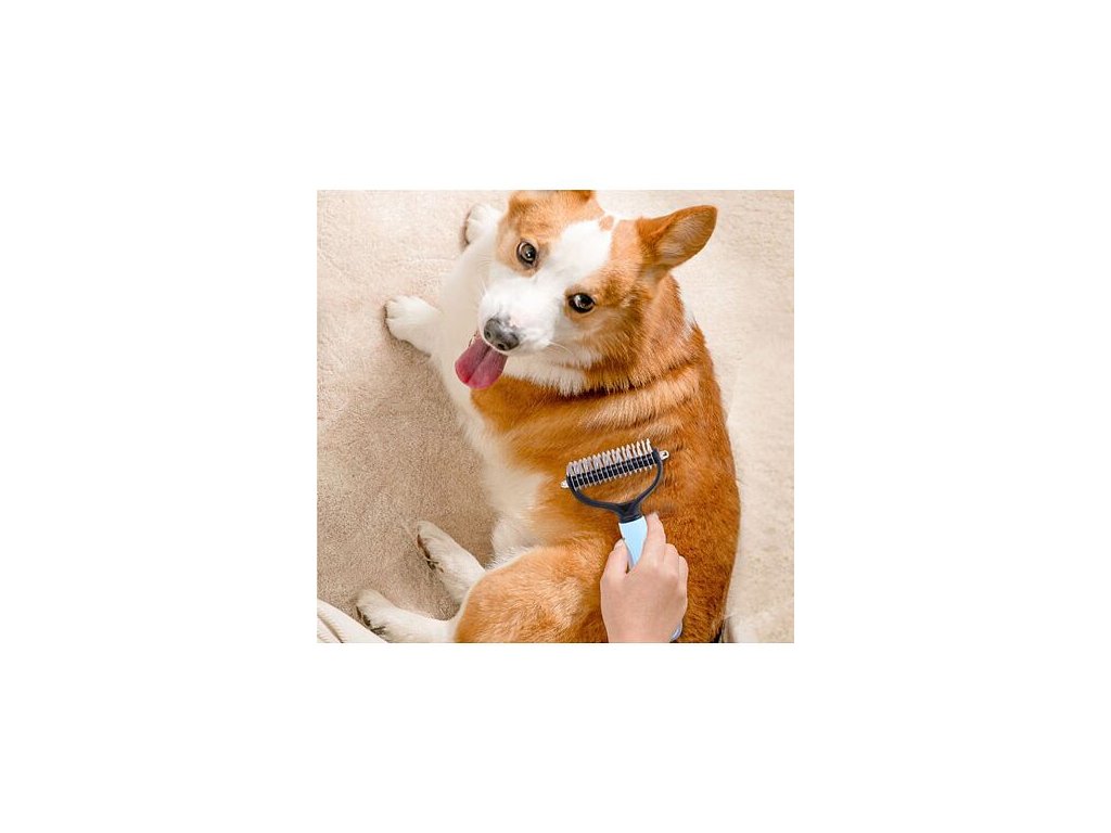 Állatodnak vastag bundája van, és szeretnél egy kis kényeztetést adni neki? A Nicer kefe nagyon hasznos eszköz kutyák, macskák és más, vastag szőrű háziállatok fésülésére. A 17,5 cm teljes hosszúságú kefe gumi nyéllel van felszerelve a könnyű kezelés érdekében. A fésülködő rész szélessége 7 cm rozsdamentes acél fogakkal szerelve. Az egyik oldalon 17 acélfogat, a másik oldalon pedig 9 acélfogat találunk a vastag és kevésbé sűrű haj fésüléséhez. Tegyen valamit kedvence egészségéért, és adjon neki egészségesebb és fényesebb szőrzetet a Nicer ecsettel. Paraméterek: méretek: 17,5 x 9 cm fésült rész szélessége: 7 cm fém fogak teljes hossza: 3 cm anyaga: rozsdamentes acél + ABS + TPPKiegészítő paraméterek