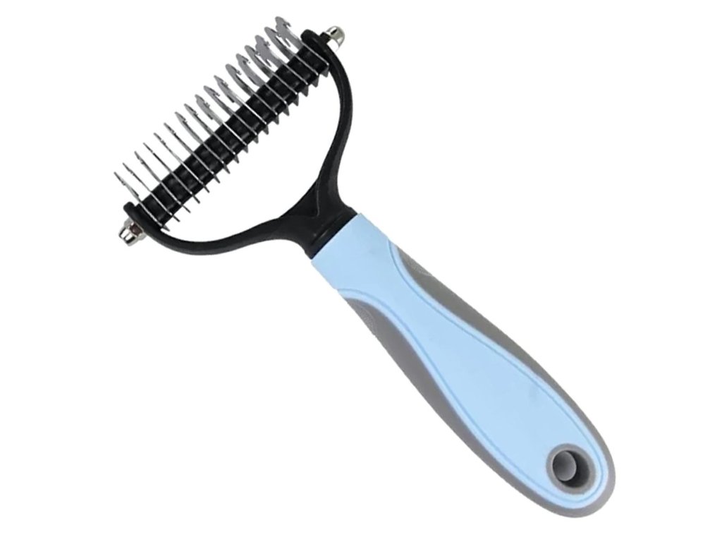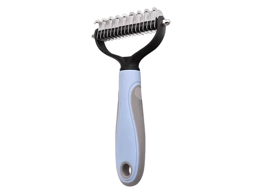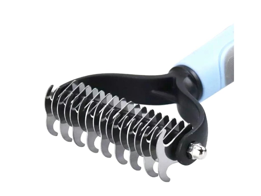 Praktikus és kényelmes hajfésű – a penge kialakításának köszönhetően a kefe hatékonyan távolítja el az elhalt aljszőrzetet a fedőréteg levágása nélkül. Nem húzza a szőrt, mint a klasszikus kisállatkefék – Házi kedvence imádni fogja a gondoskodást! Tökéletesen megakadályozza az összegabalyodást, és csökkenti a vedlés gyakoriságát.